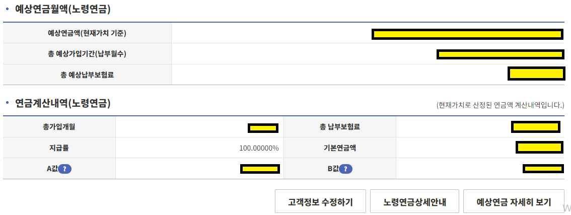 ▶화면 하단을 보시면 국민연금 예상금액도 확인하실 수 있습니다.